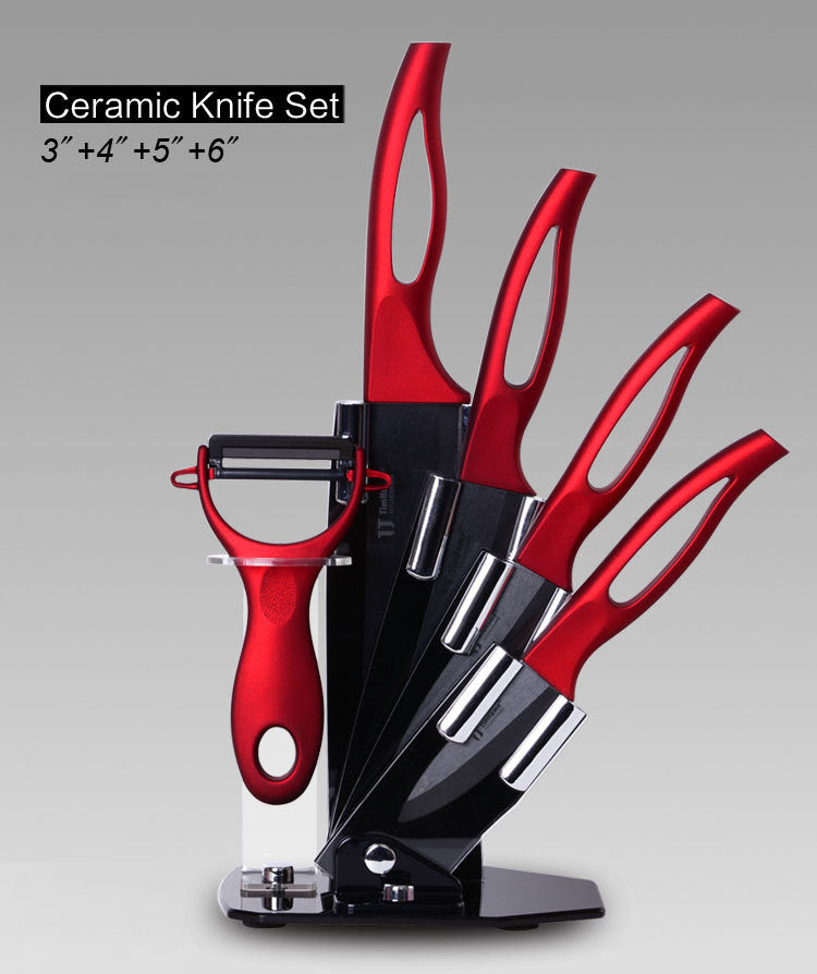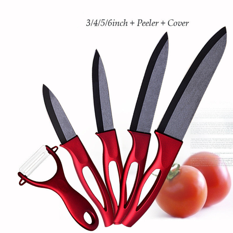 KD Knives Set 6-piece Set Of Black Blade Ceramic Knives With Hollow Shank