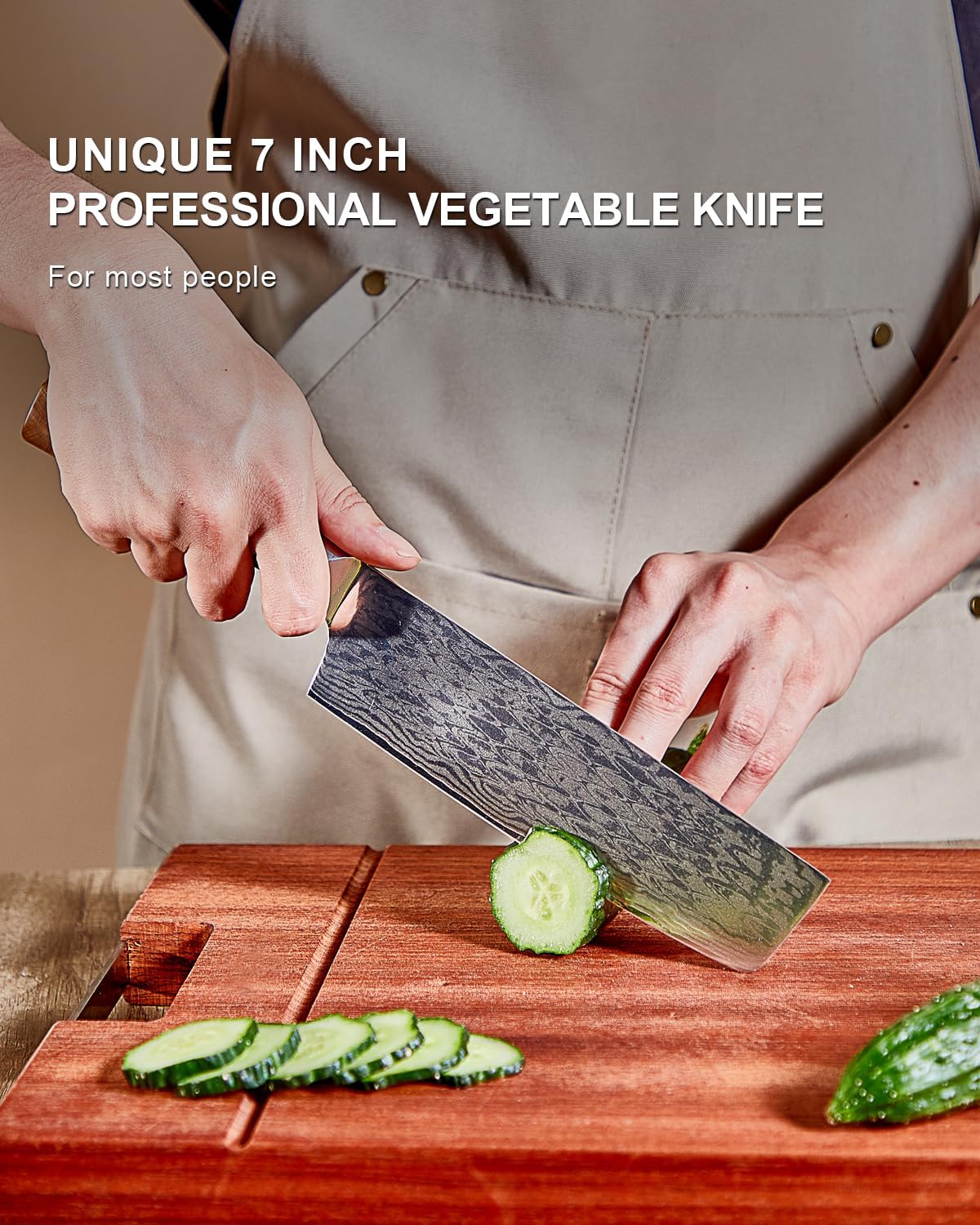 KD Japanese Nakiri Knife 45-layers AUS-10 Damascus Steel with Gift Box